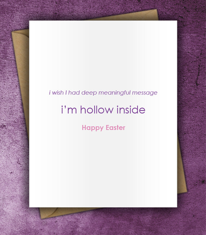 "I wish I had a deep meaningful message. I'm hollow inside. Happy Easter."