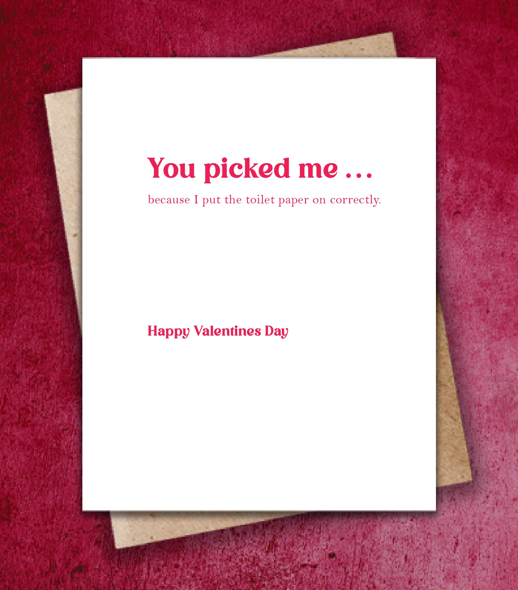 "Let's be honest ... you didn't pick me for my good looks. You picked me because I put the toilet paper on correctly. Happy Valentine's Day"