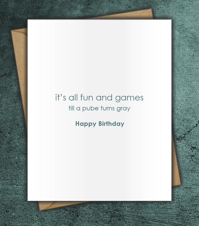 "it’s all fun and games till a pube turns gray. Happy Birthday"